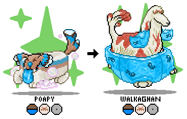 Interesting Facts: Poapy uses its slick soapy body to slide down sheer rock faces. On maturation it becomes a gelled mass of watery cuffs to keep it permanently clean and help it build muscle. Sometimes little fishy morphs get in there.