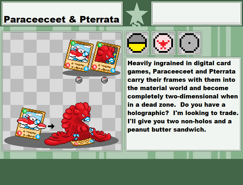 Interesting Facts: Zippet can be worn and used to store things, but if you put snacks in it they might disappear. Gondolable’s body technically includes the posts supporting its cable, but they’re usually so far away you don’t see them.