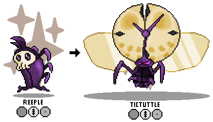 Interesting Facts: Reeple has six legs, but it usually stands on the tips of its wing case, looking like a menacing little creeper. It crawls inside walls, staring through any holes. Tictuttle is much less subtle, using the clock pattern on its wing case and its rotating hand-shaped antennae to warn you that you’re running out of time. Time for what? They never say… because cillimorphs can’t talk.