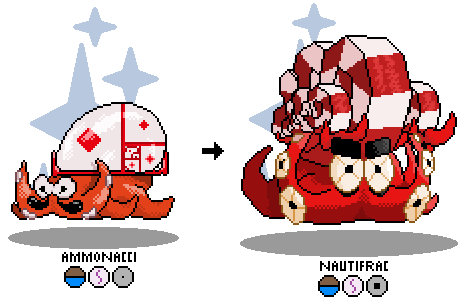 Interesting Facts: Ammonacci has a mathematically perfect shell, the purpose of which is unknown, so we’ll assume bragging rights. As Nautifrac, the shell is covered in endlessly diminishing versions of itself that would surely drive a man to obsession, madness, and death, so just look at its cute grumpy eyebrows instead.