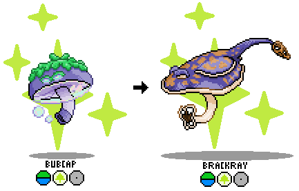 Interesting Facts: Bubcap uses the bubble under its gills and its snorkel tail to hang in the middle of the water so it never has to surface and say the morph equivalent of ‘Polo’ in games of Marco Polo. This activity is estimated to take up 73% of all amphibious wild cillimorphs’ free time. Brackray picks up food off the bottom as it cruises with its stalk-mouth, which makes an alright pogo stick on land.