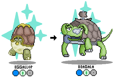 Interesting Facts: Eggallop stays upright with its low center of gravity, which makes enough sense, but when it becomes Beagala it can run just like a dog… except in slow motion. Its baffling to watch and irritates physicists to no end. It wags its tail and licks your face in slow motion too.