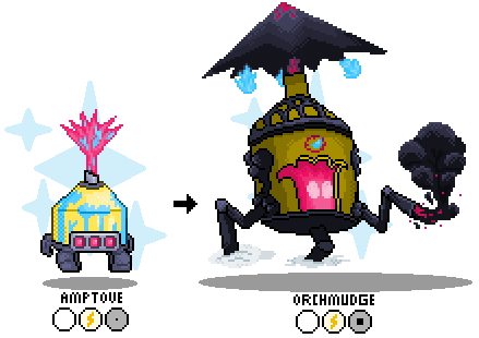 Interesting Facts: After collecting cast off waxes and fats from other morphs, Puffuddle ignites a spirit flame to power its internal steam engine. The adult adds sail functionality enhanced by its own emanations.