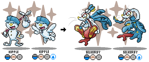 Interesting Facts: Every-vigilant despite their laid-back expressions, Shtilts and Firewatchurn elevate themselves above the water on long fins to watch for forest fires, which they can extinguish from a great distance by spitting.