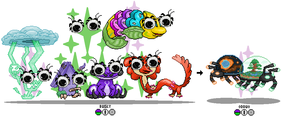 Interesting Facts: Bugly always functions as a pair, hitching a ride on all kinds of cillimorphs, dropping over their eyes at the funniest times to embarrass them. Maturing gives them some dignity, as each half contains a complementary miniature world.